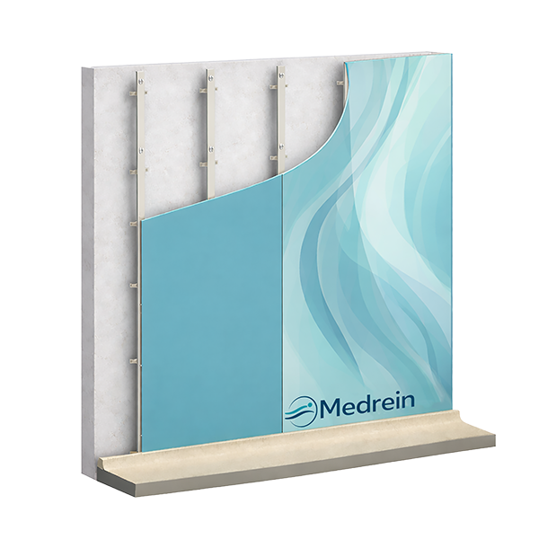 Панель состоит из ГМЛ основы и наклеенного каленого стекла толщиной 4–10 мм. Рисунок/принт наносится по согласованному макету. Узлы примыкания и швы проектируются под герметизацию для соответствия требованиям чистых зон.